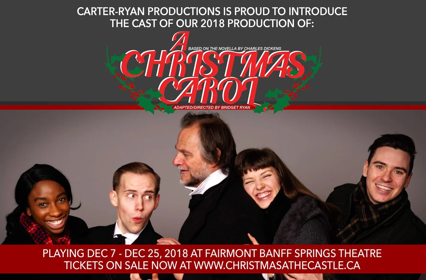 THE 2019 COMPANY OF A CHRISTMAS CAROL: Paul Cowling, Nick Rose, Gabby Bernard, Tanya Pacholok and Greg Wilson. Stage Management: Linda Mullen and Roxanne Cote.